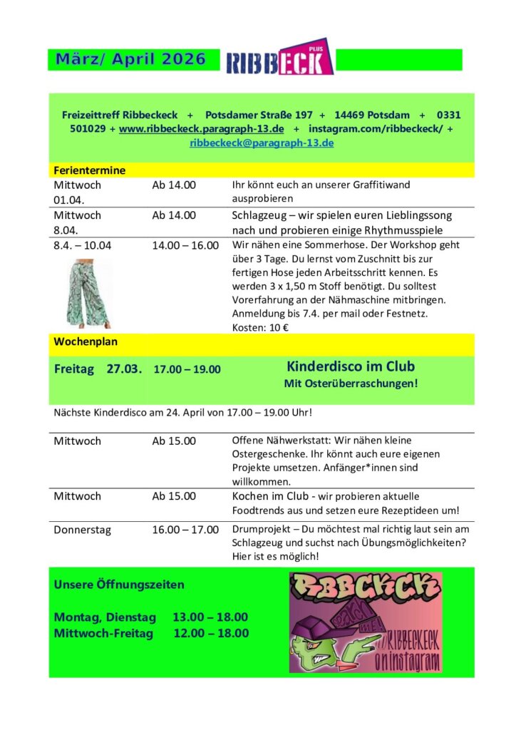 Sie finden hier Informationen über Veranstaltungen in Potsdam Bornstedt und Umgebung, über die Stadtteilarbeit in Bornstedt sowie über den Stadtteilladen und Angebote, bei denen Sie mitmachen können.