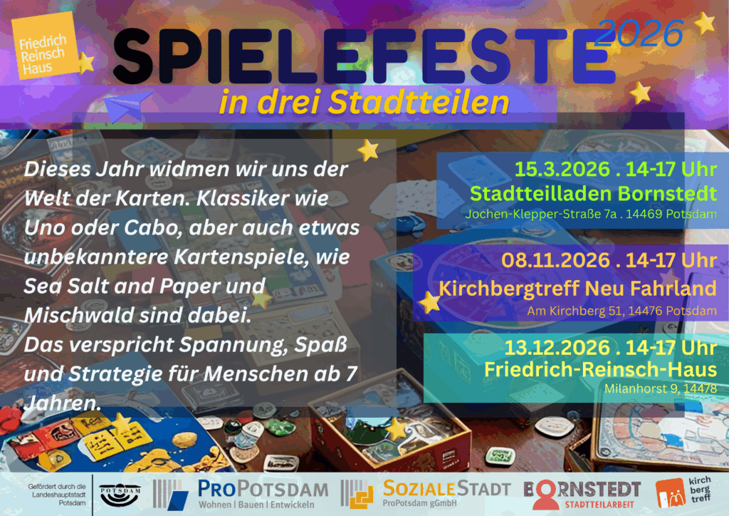 Sie finden hier Informationen über Veranstaltungen in Potsdam Bornstedt und Umgebung, über die Stadtteilarbeit in Bornstedt sowie über den Stadtteilladen und Angebote, wie Sie mitmachen können.