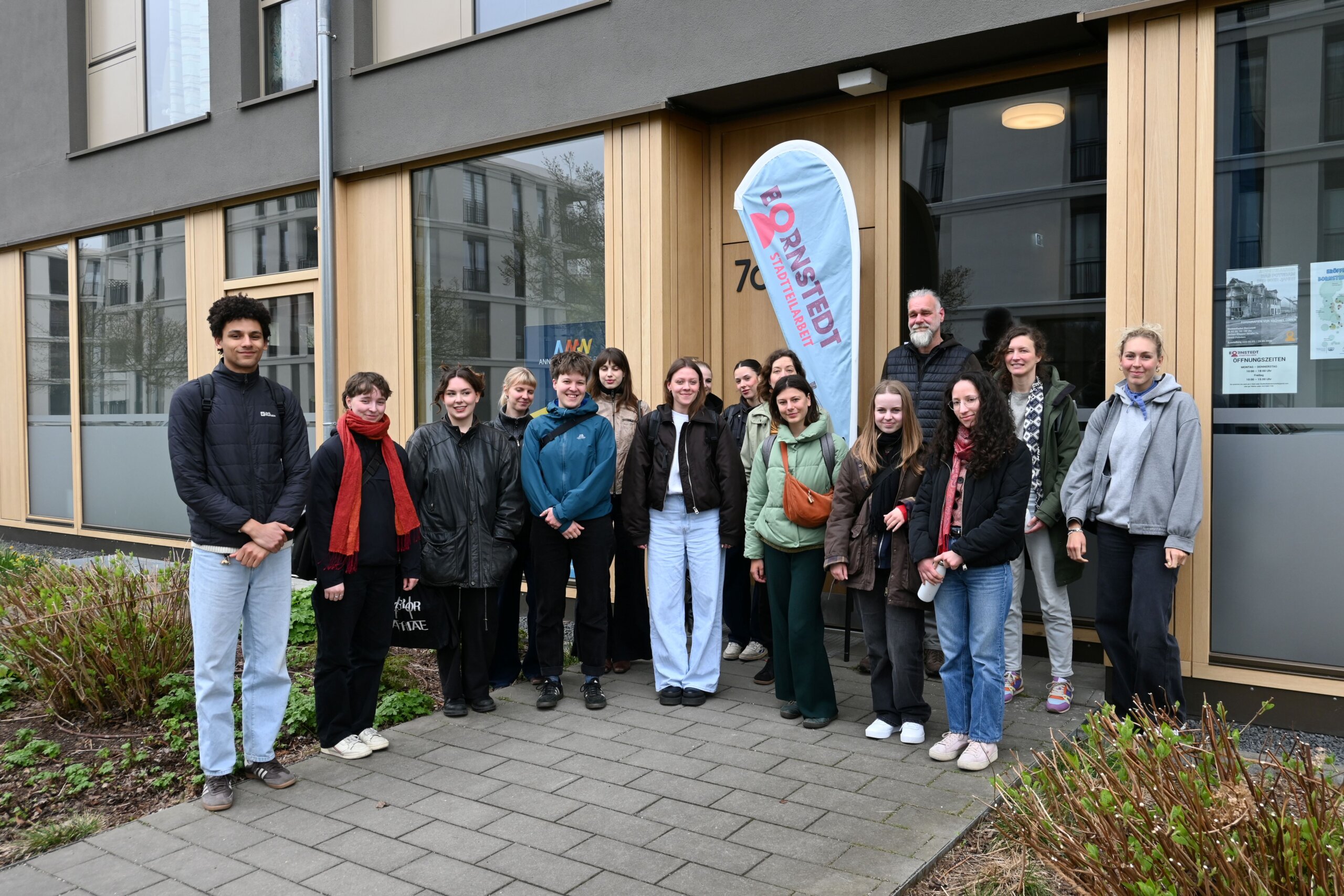 Sie arbeiten zusammen an diesem Projekt: Studierende des Typografieseminars an der Fachhochschule Potsdam und Mitarbeitende des Stadtteilladens Bornstedt. Foto: Beatrix Fricke