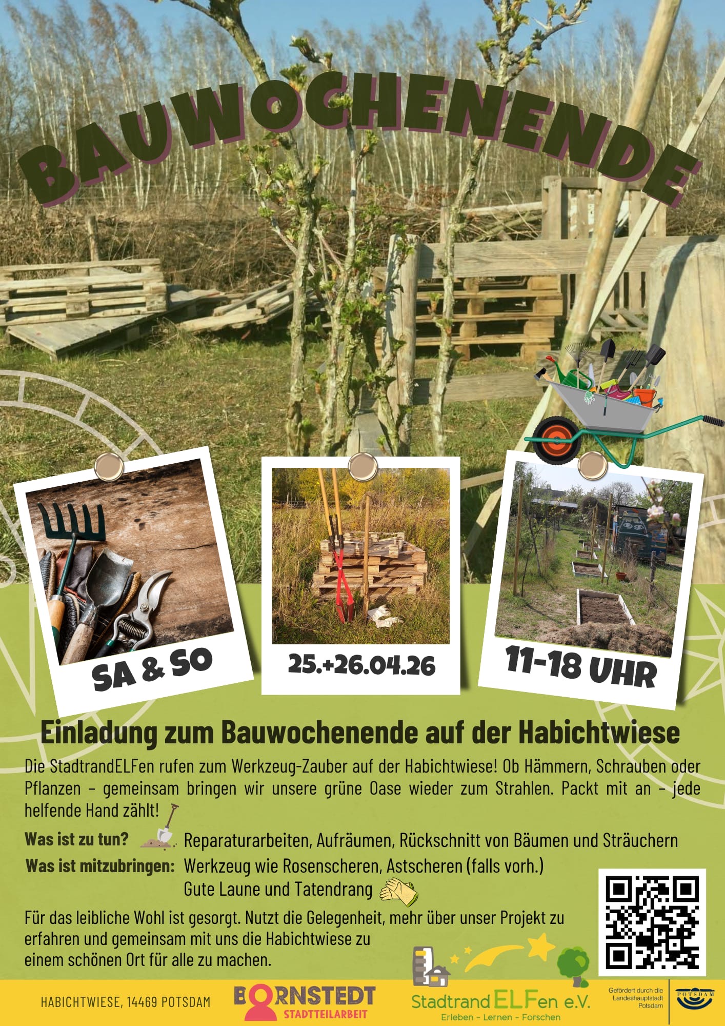 Die StadtrandELFen rufen zum Werkzeug-Zauber auf der Habichtwiese! Ob Hämmern, Schrauben oder Pflanzen – gemeinsam bringen wir unsere grüne Oase wieder zum Strahlen.