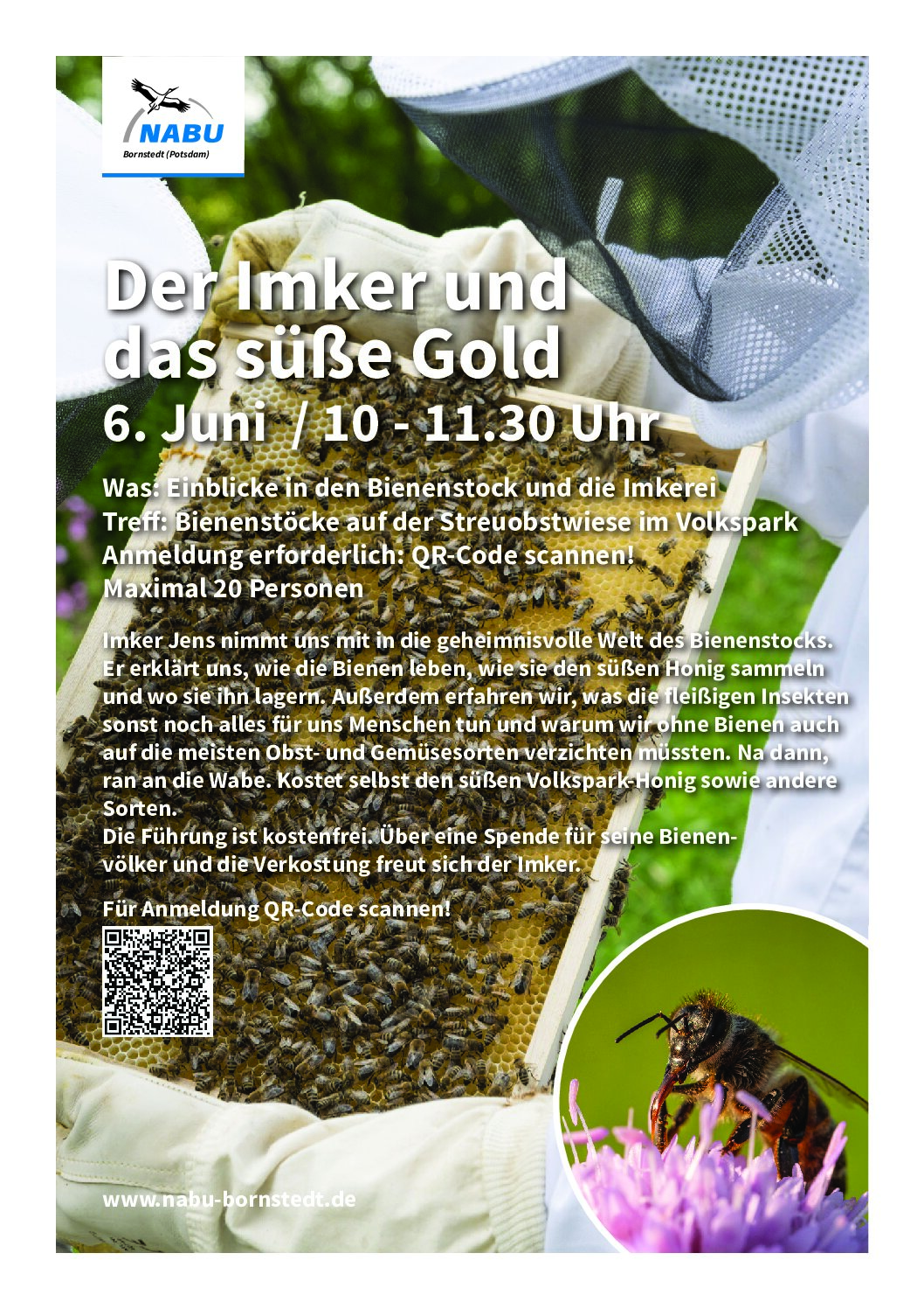 Imker Jens nimmt uns mit in die geheimnisvolle Welt des Bienenstocks. Er erklärt uns, wie die Bienen leben, wie sie den süßen Honig sammeln und wo sie ihn lagern. Außerdem erfahren wir, was die fleißigen Insekten sonst noch alles für uns Menschen tun und warum wir ohne Bienen auch auf die meisten Obst- und Gemüsesorten verzichten müssten. Na dann, ran an die Wabe. Kostet selbst den süßen Volkspark-Honig sowie andere Sorten.