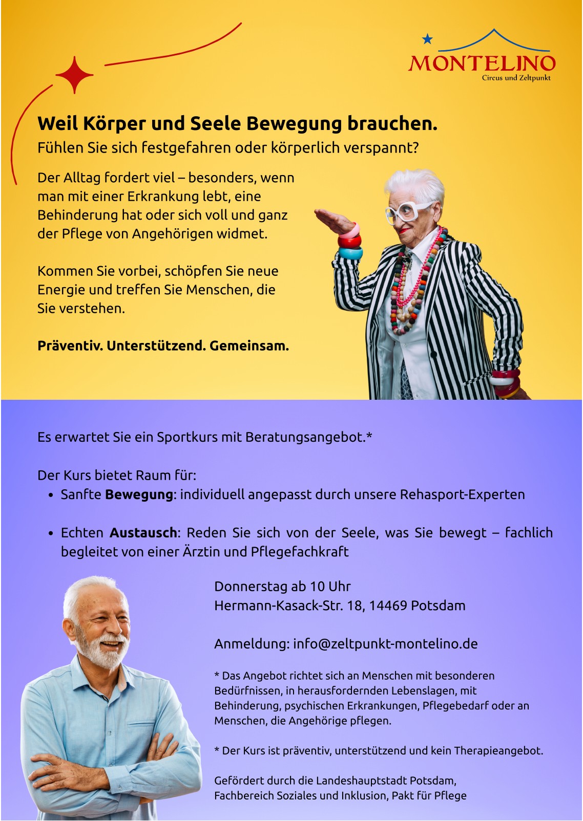 Der Kurs bietet Raum für: Sanfte Bewegung: individuell angepasst durch unsere Rehasport-Experten.