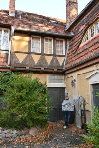 Leger in Jeans und Pullover gekleidet, auf dem Kopf ein Basecap, öffnet Martin-Max Zühlke das Eingangstor an der Potsdamer Straße. Um seine Beine streicht Katze Dora. Zühlke lächelt freundlich und führt Besuchende routiniert über das Gelände. Das ist Teil seiner Arbeit: Der 57-Jährige hat das einstige „Prinzeß Feodora Jugendheim“ zu einer Eventlocation ausgebaut.